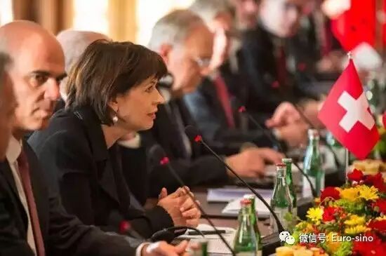 联邦主席洛伊特哈德代表瑞士参加了会谈,她同时也是瑞士环境、交通、能源和通信部部长。出席会议的瑞士联邦委员还包括:联邦委员会副主席阿兰·贝尔赛、联邦委员迪迪埃·布尔克哈尔特、联邦委员于利·毛雷尔和联邦委员约翰·施耐德-阿曼。中国代表团方面,习近平主席由负责外交事务的国务委员杨洁篪、中国外交部部长王毅、中国发改委主任徐绍史和商务部部长高虎城陪同出席。