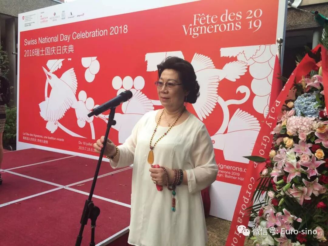 在活动中,首席代表张新宜女士与瑞士驻华大使戴尚贤先生进行了亲切的对话,就双方都感兴趣的中国瓷器瑞士展览事宜进行了沟通。张女士还与参加本次国庆日活动的瑞士各界人士进行了交流。
